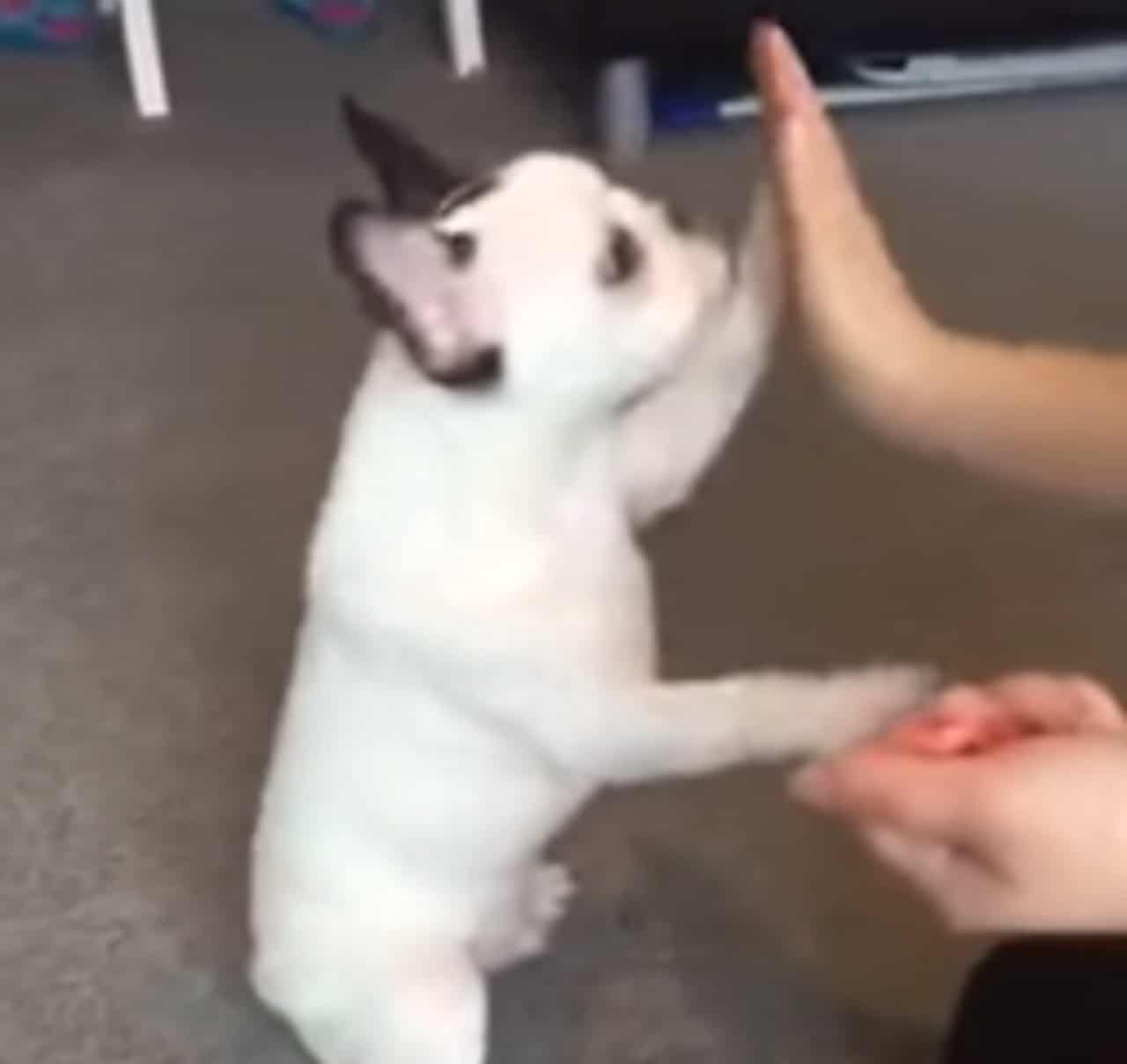 Despite the pooch’s obliviousness, Mom continues asking the pooch to perform a high-five. But, as Carlos already associated the snack with him performing the tricks, he willingly gives Mom an energetic high-five before snatching the treat.